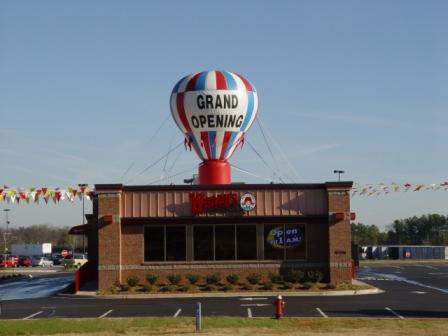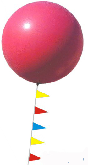 These balloons come in 4ft. and 5 1/2ft. They come in various colors and with a 50 ft. special pennant. These balloons draw attention by floating and swaying over your location, with the pennant line drawing your potential customer's eyes, directly down to your location. These balloons will fly 3 to 5 days, (depending on the weather, the colder and calmer the weather, the longer the balloons will fly).